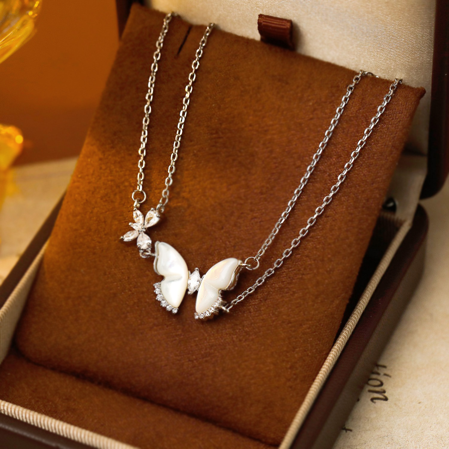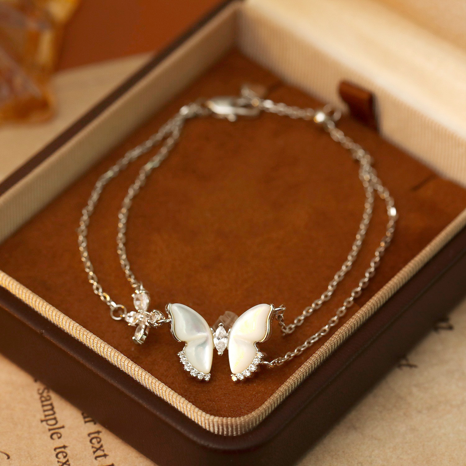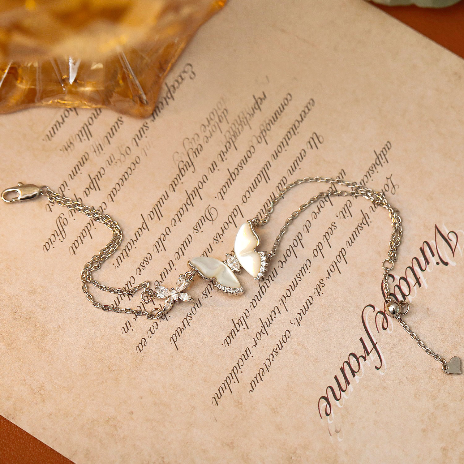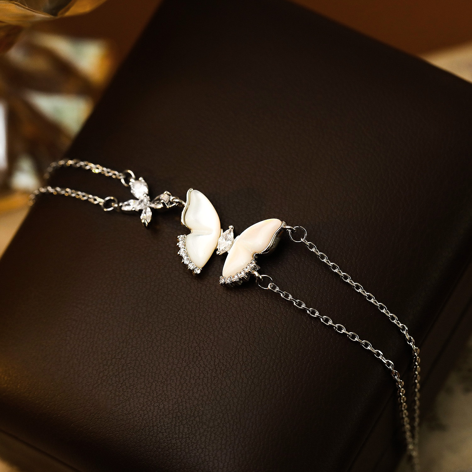 Браслеты из ракушек , Латунь, с Белая ракушка, с 3.5cm наполнитель цепи, бабочка, Другое покрытие, Двойной слой & инкрустированное микро кубического циркония & Женский, платиновый цвет, The pendant is 1.4cm long and 1.9cm wide, длина:16 см, продается PC