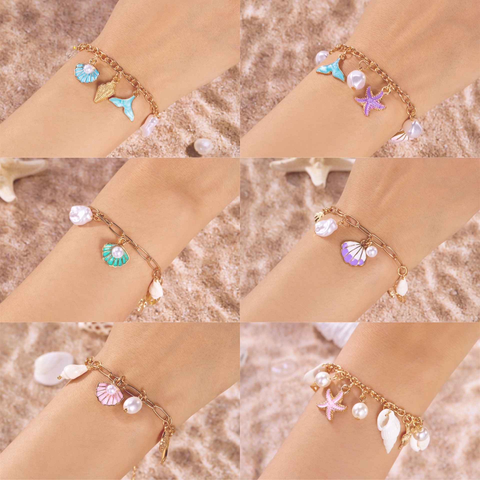 - Ракушка Браслет набор, с полимерный клей & Шнур-терилен & цинковый сплав, Связанный вручную