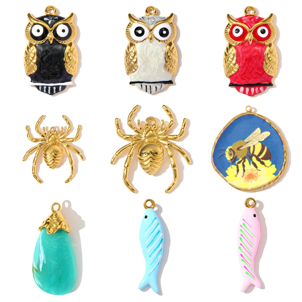 Нержавеющая сталь животных Подвески, Нержавеющая сталь 304, плакирован золотом, DIY & эмаль, Много цветов для выбора, 3ПК/сумка, продается сумка