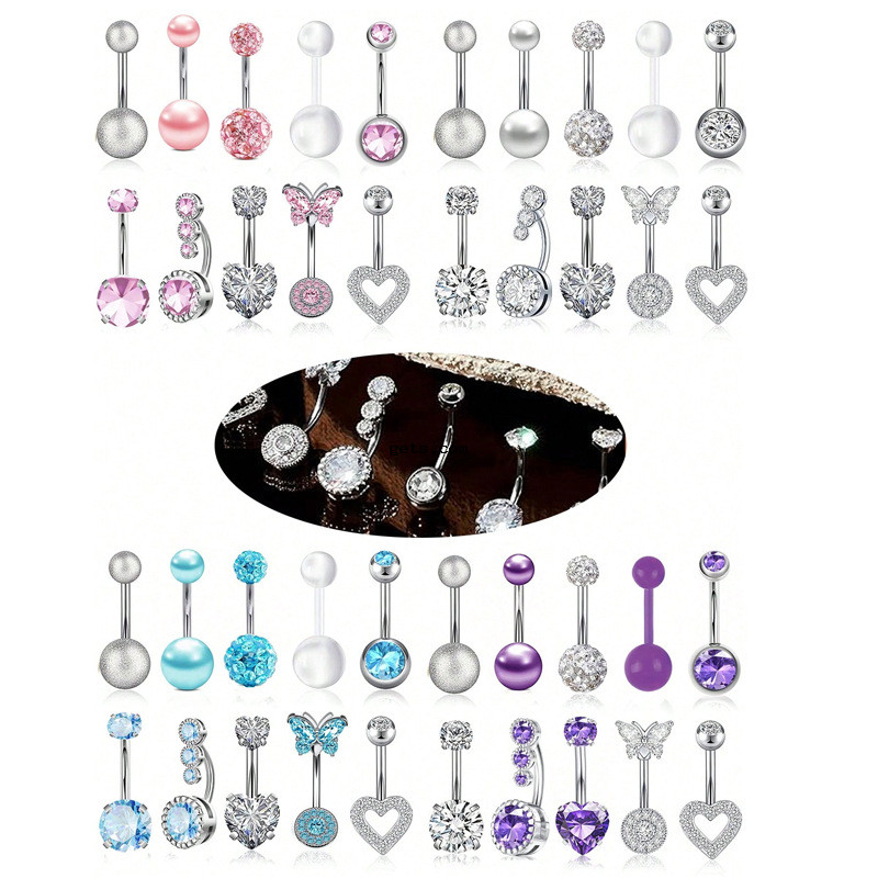 Нержавеющая сталь 304 колечки для пупка, с Пластиковая жемчужина, Другое покрытие, 10 шт. & Мужская & инкрустированное микро кубического циркония, Много цветов для выбора, belly ring rod size 1.6x10mm, продается указан