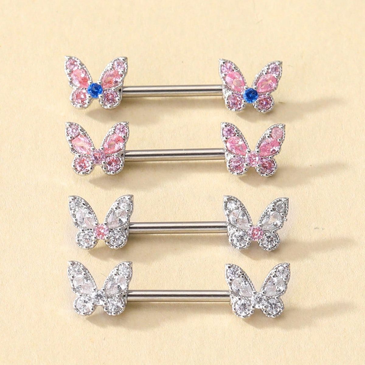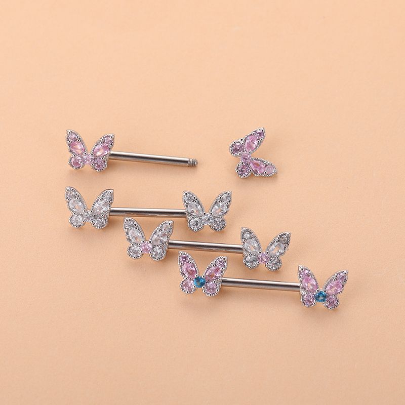 Нержавеющая сталь 304 колечки для сосков, бабочка, Мужская & инкрустированное микро кубического циркония, Много цветов для выбора, 14mm, продается PC
