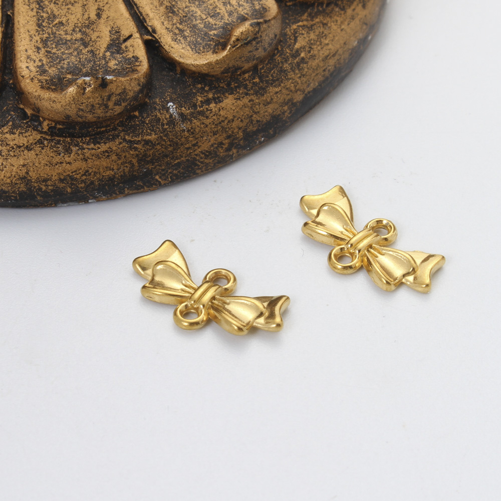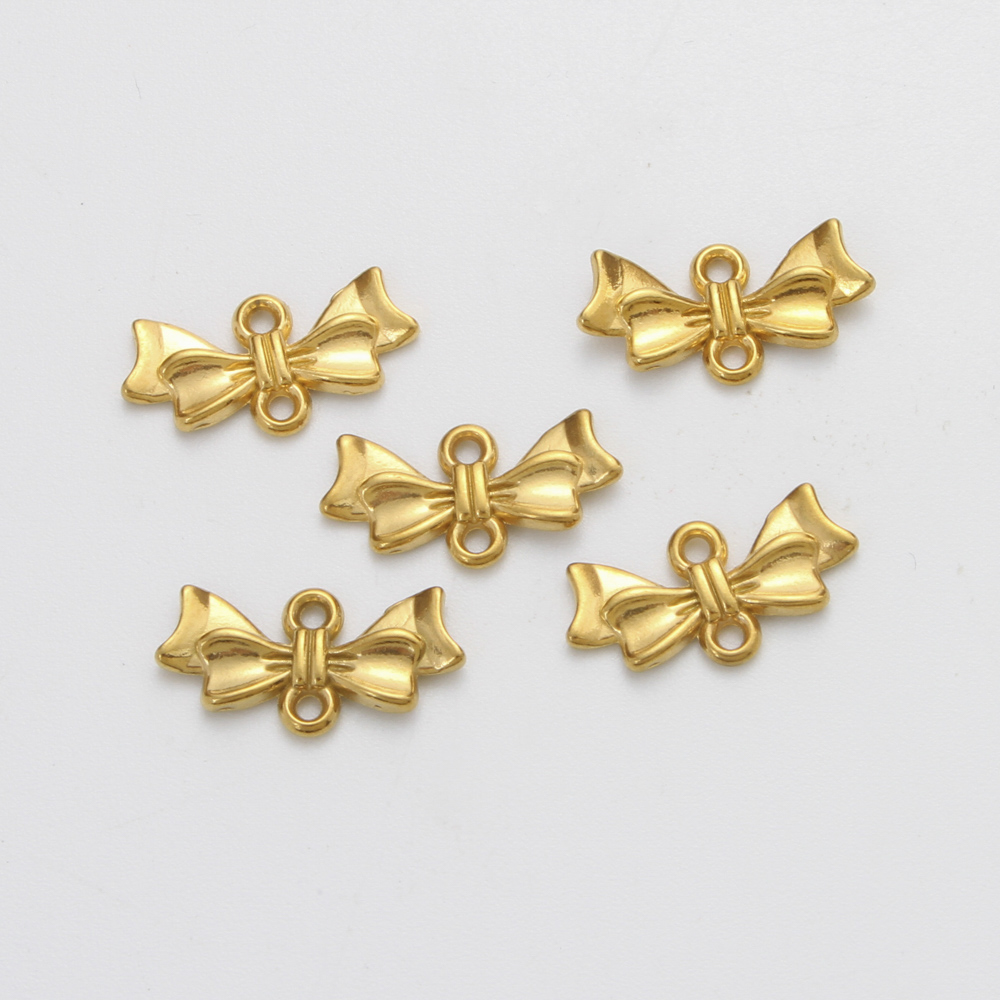 Соединители из нержавеющей стали, Нержавеющая сталь 304, Бантик, плакирован золотом, DIY, Золотой, 8.60x16.60x2.50mm, продается PC
