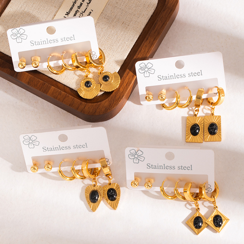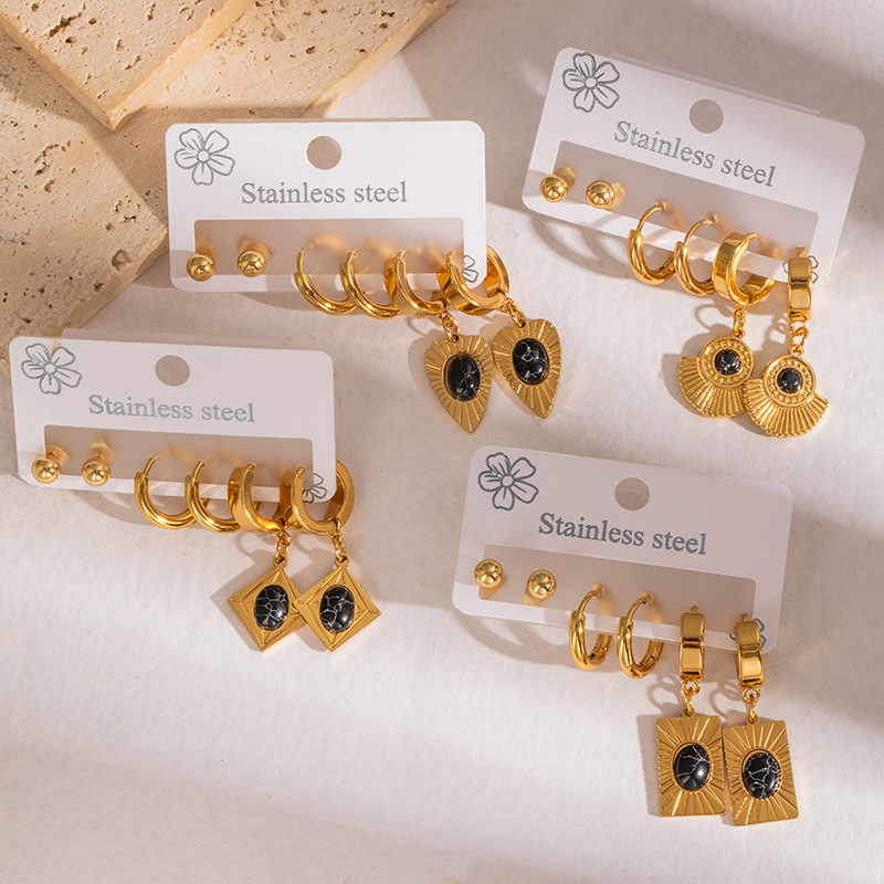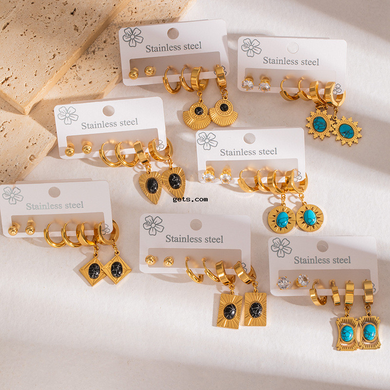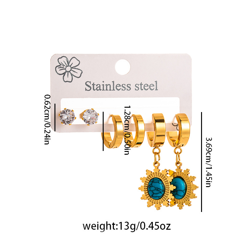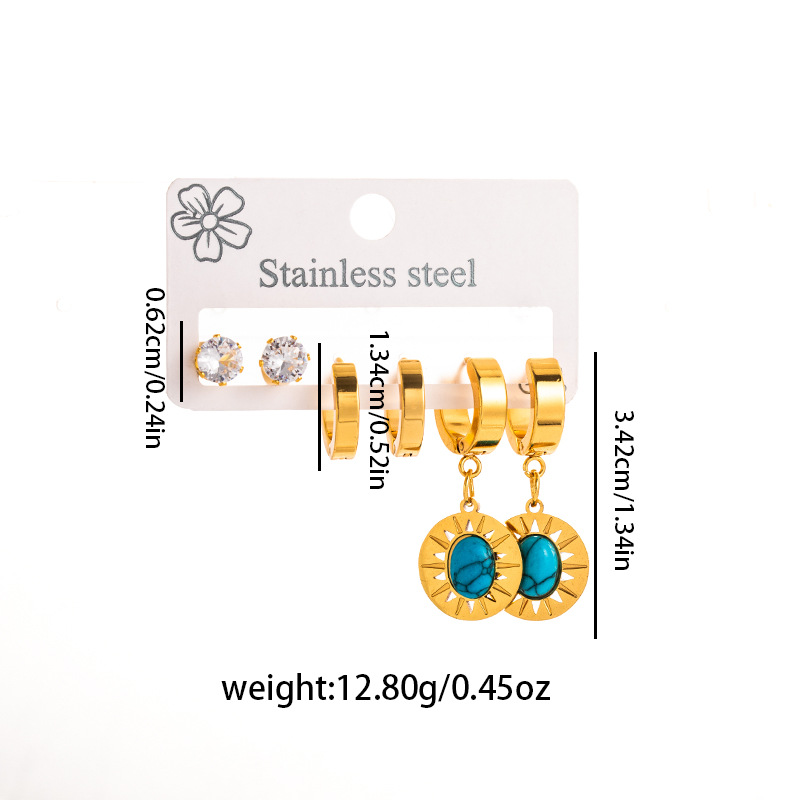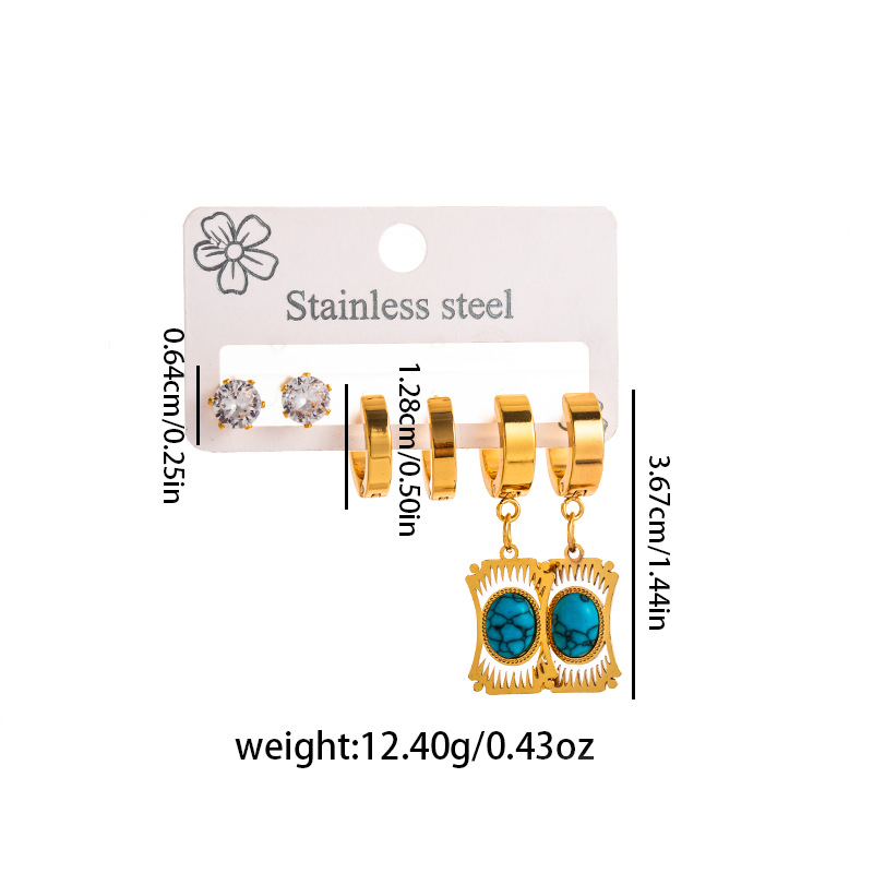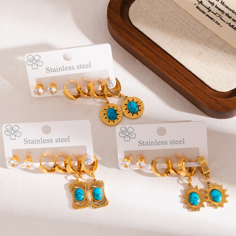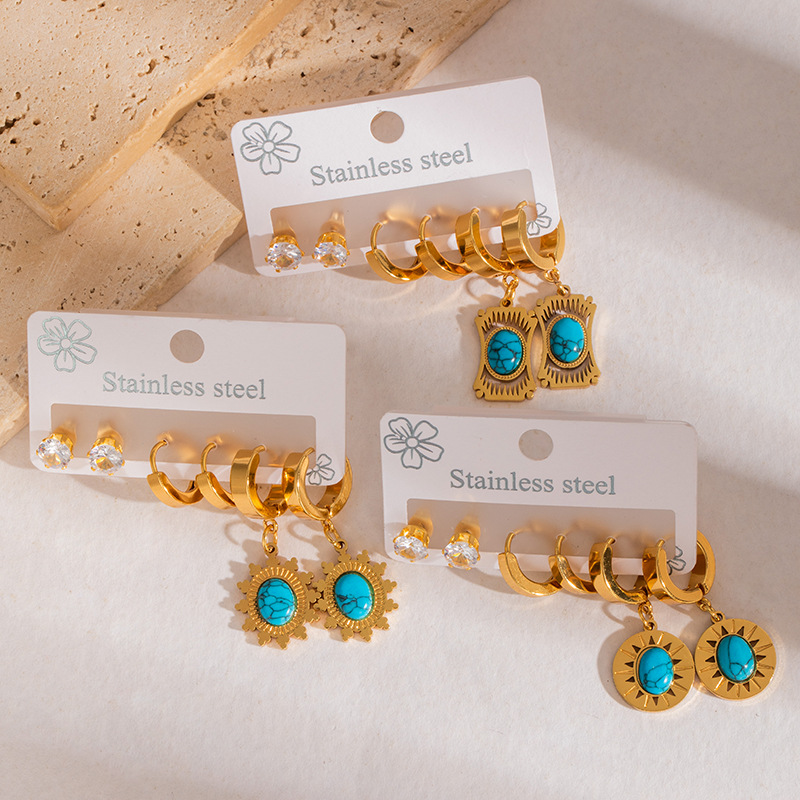 Нержавеющая сталь падение Серьги, Нержавеющая сталь 304, с Синтетическая бирюза, Другое покрытие, три части & разные стили для выбора & Женский, Золотой, продается указан