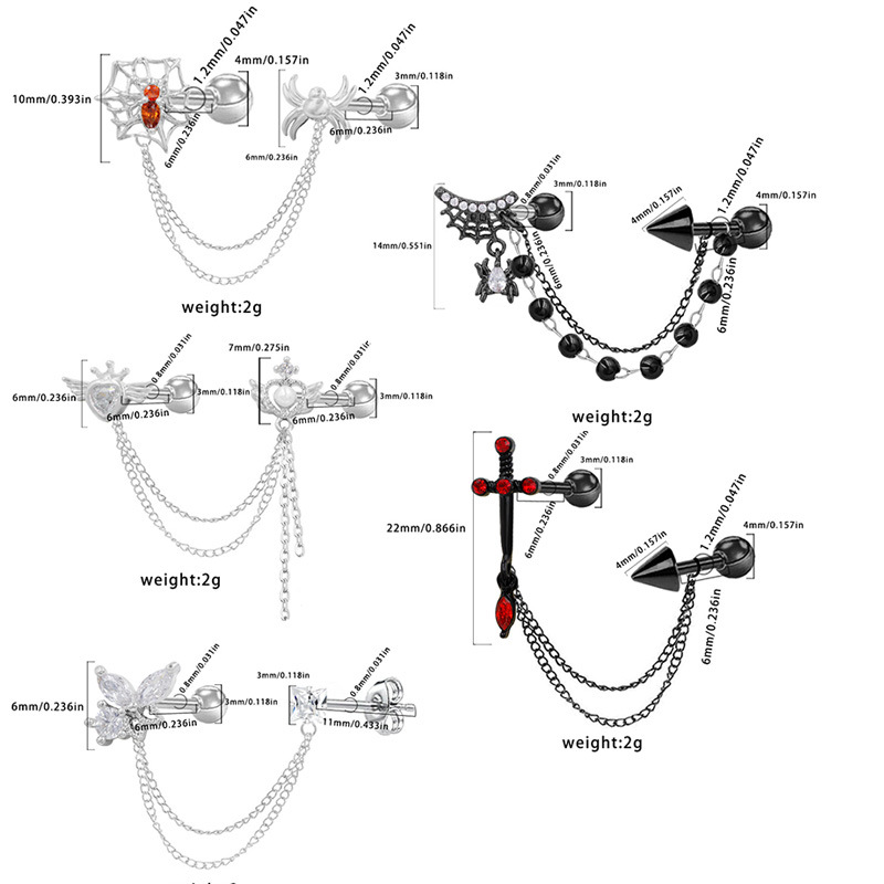 Пирсинг уха из нержавеющей стали, нержавеющая сталь, Сердце