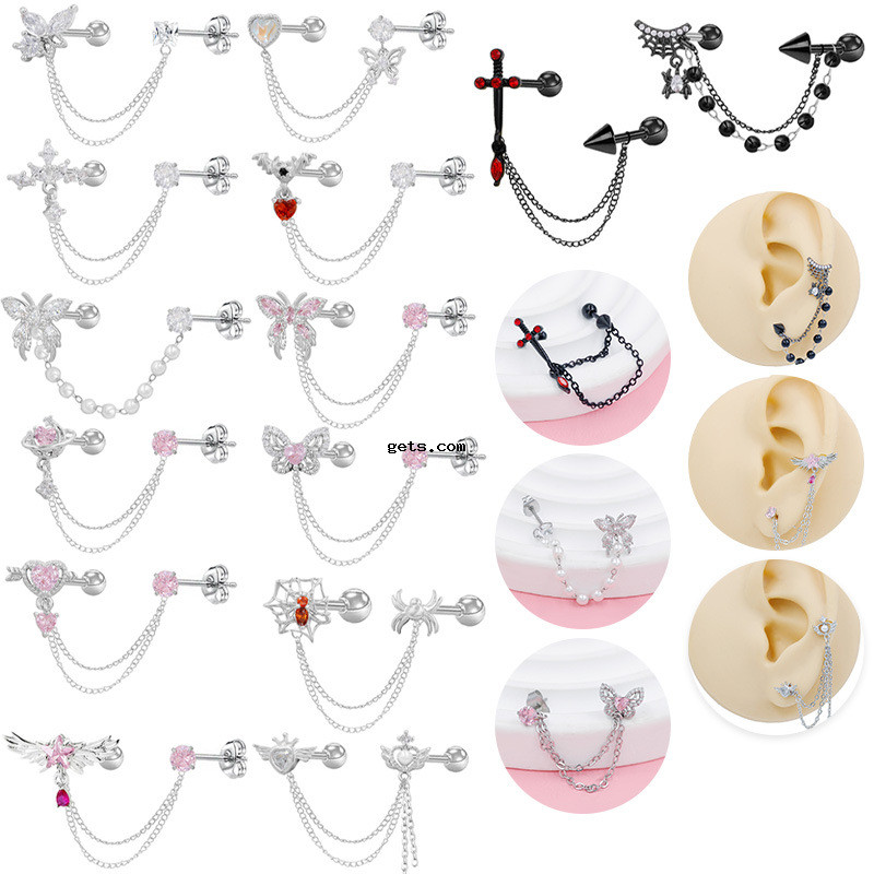 Пирсинг уха из нержавеющей стали, нержавеющая сталь, бабочка