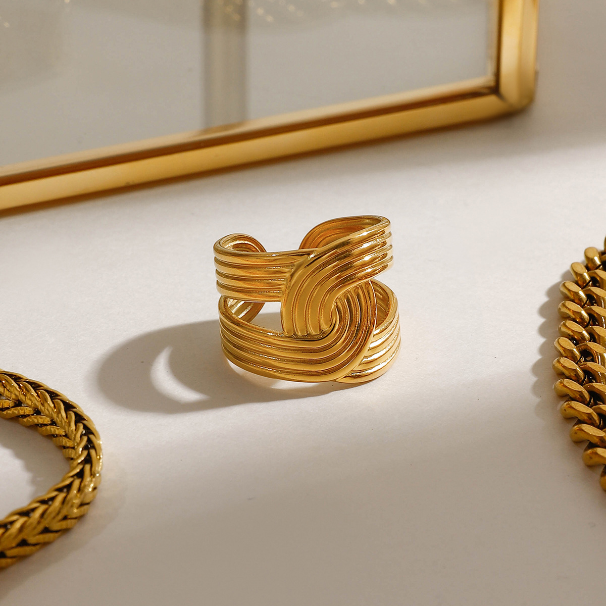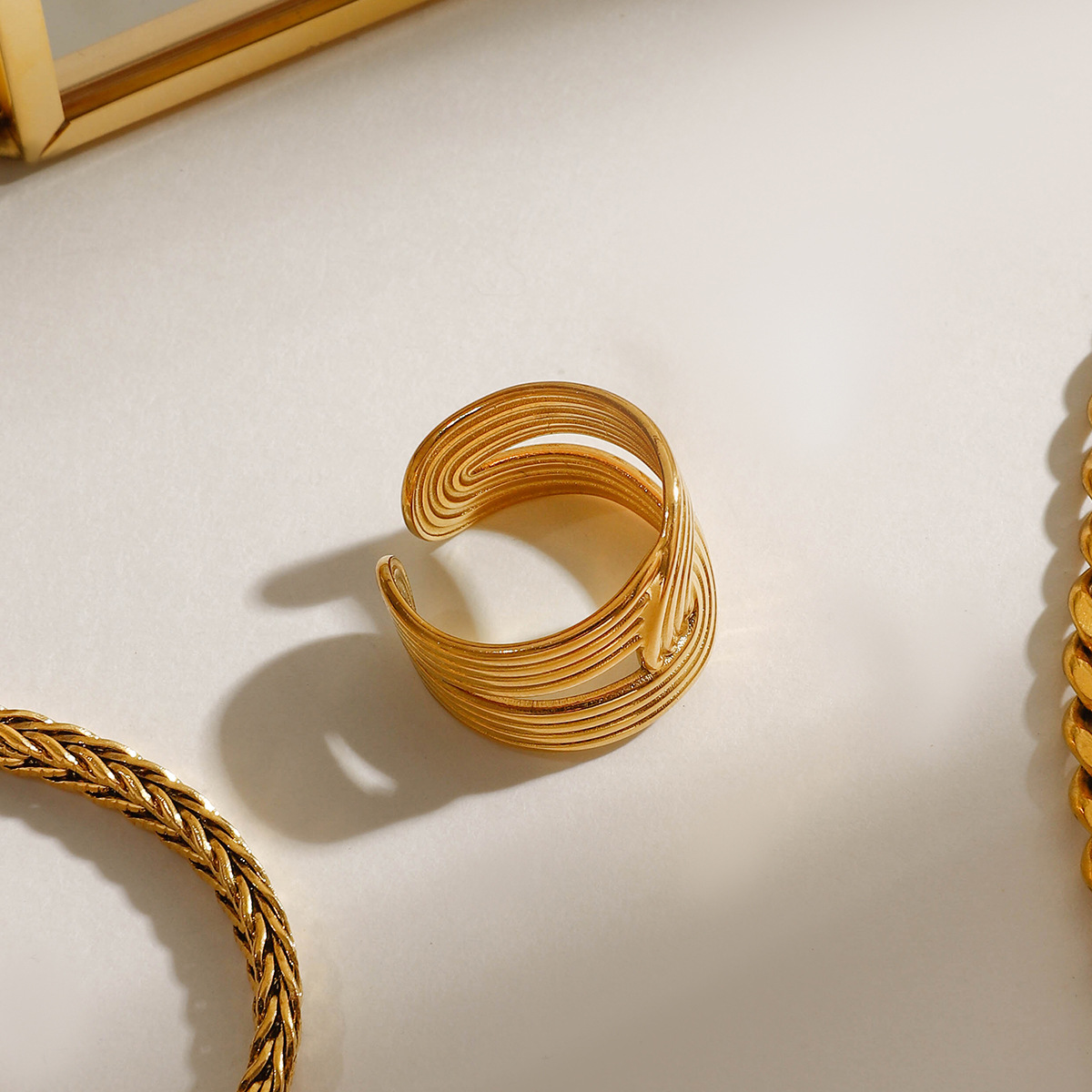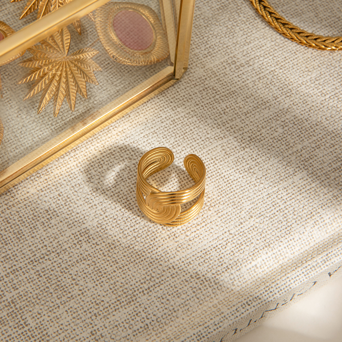 Палец кольцо из нержавеющей стали, Нержавеющая сталь 304, Другое покрытие, ювелирные изделия моды & Женский & отверстие, Золотой, продается PC