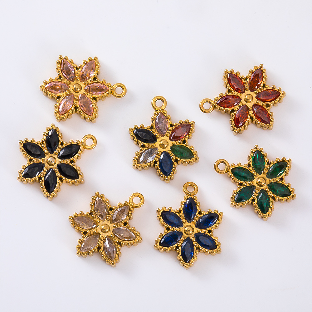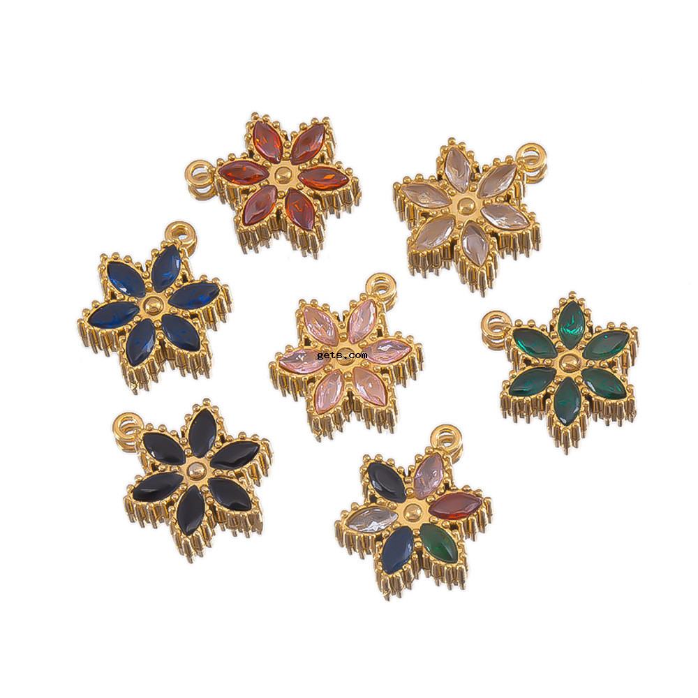 Нержавеющая сталь Подвеска Цветок, Нержавеющая сталь 304, с кубический цирконий, Форма цветка, плакирован золотом, DIY, Много цветов для выбора, продается PC