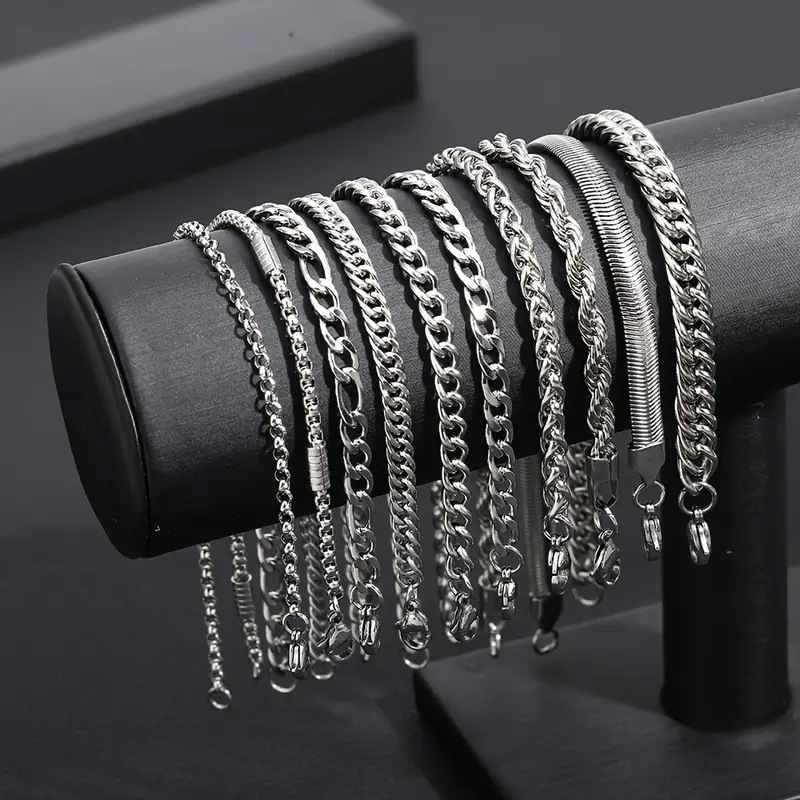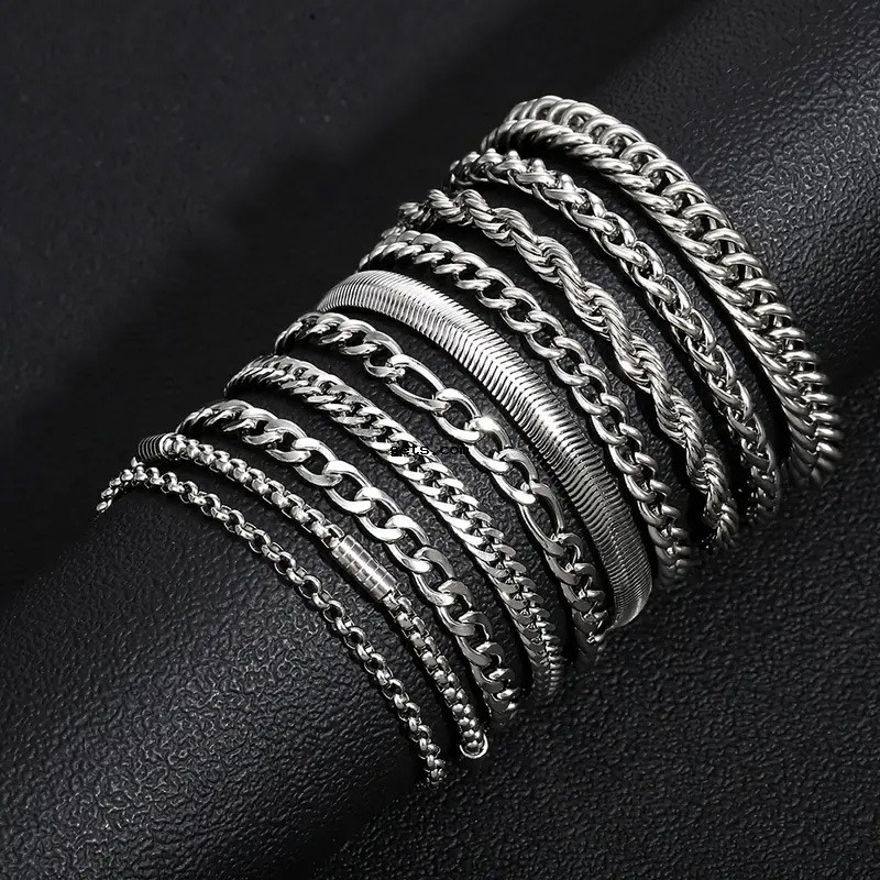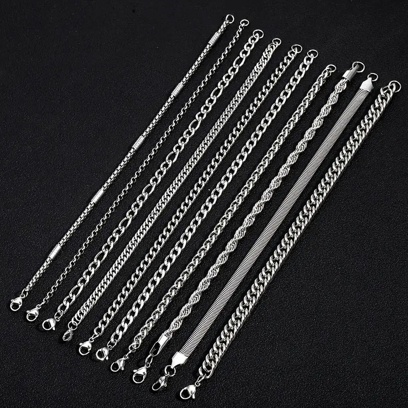 Нержавеющая сталь 304 Браслет набор, 10 шт. & ювелирные изделия моды & Мужский, оригинальный цвет, длина:Приблизительно 8.27 дюймовый, продается PC