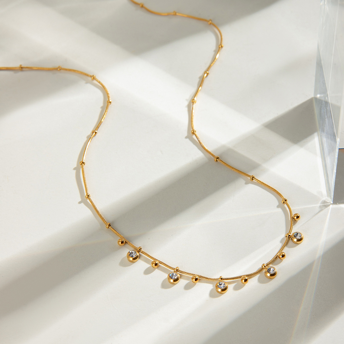 Ожерелье из нержавеющей стали , Нержавеющая сталь 304, Другое покрытие, ювелирные изделия моды & инкрустированное микро кубического циркония & Женский, Золотой, продается PC