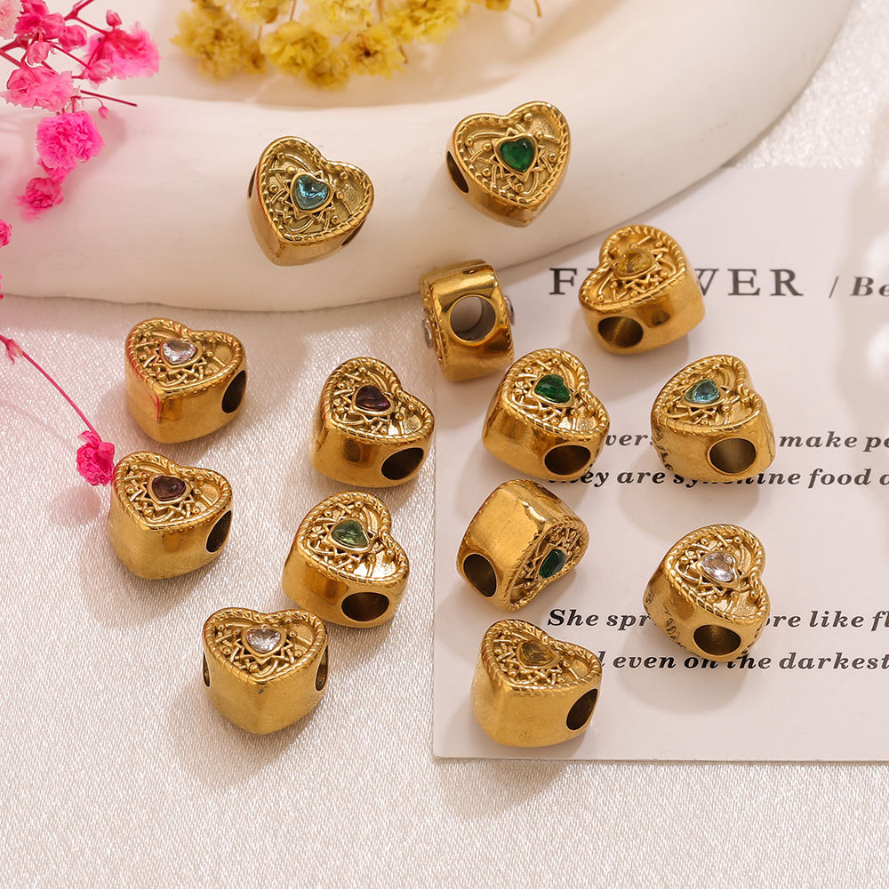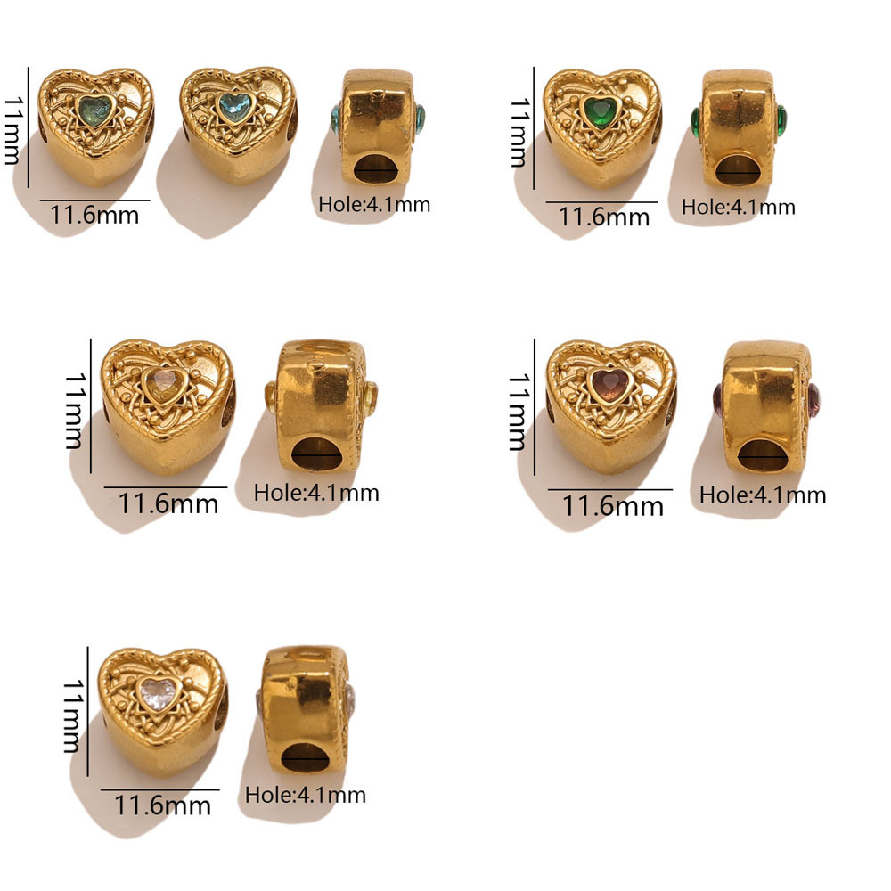 Большое отверстие бусины из нержавеющей стали, Нержавеющая сталь 304, Сердце, плакирован золотом, DIY & со стразами, Много цветов для выбора, 11.60x11mm, отверстие:Приблизительно 4.1mm, продается PC