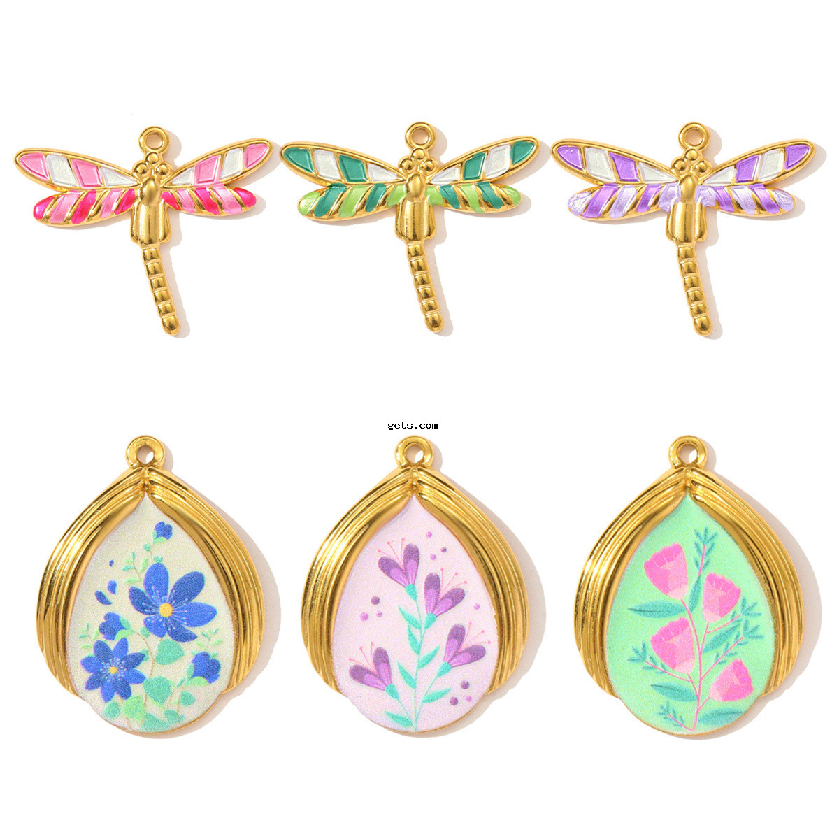 Ювелирные подвески из нержавеющей стали, Нержавеющая сталь 304, плакирован золотом, DIY & эмаль, Много цветов для выбора, 3ПК/сумка, продается сумка