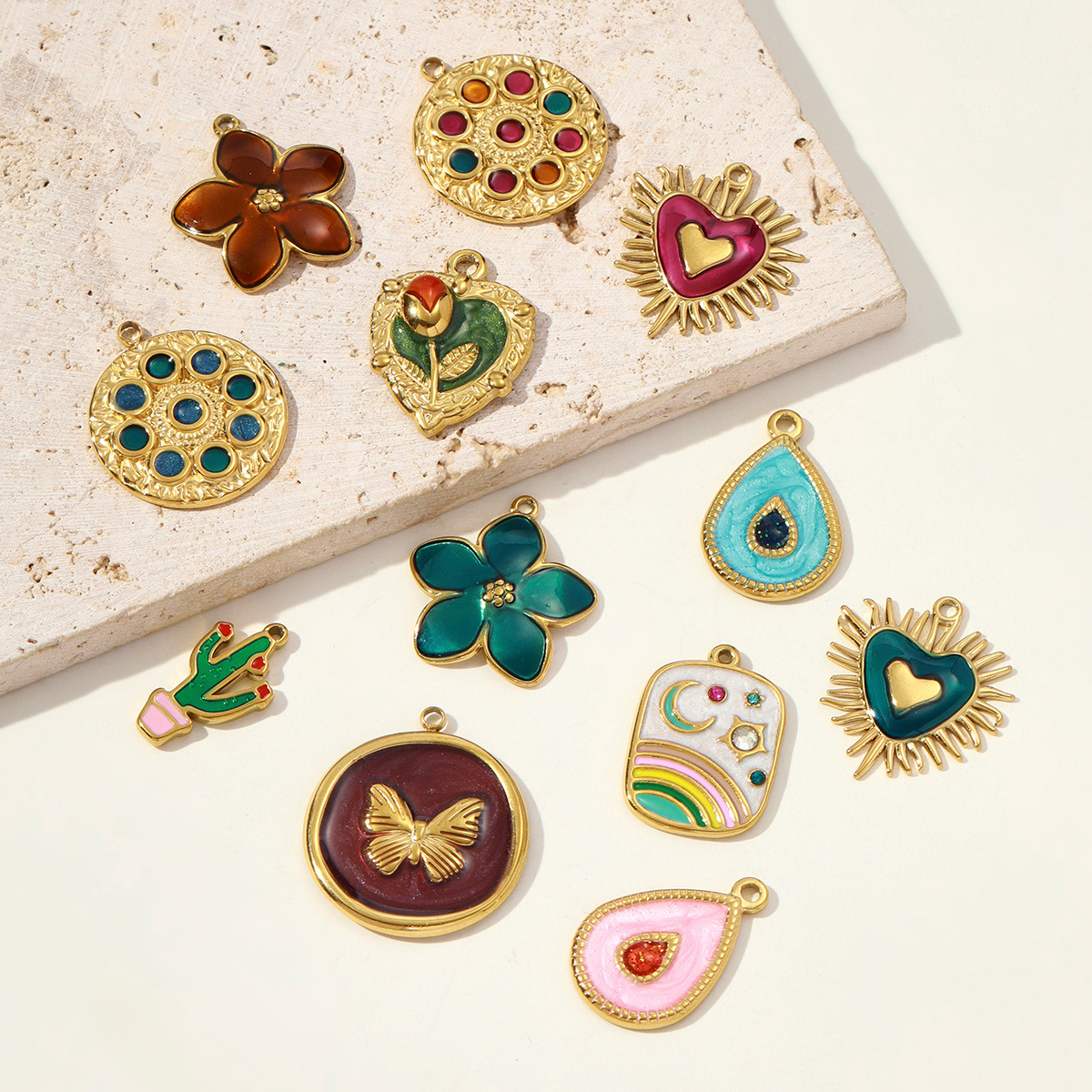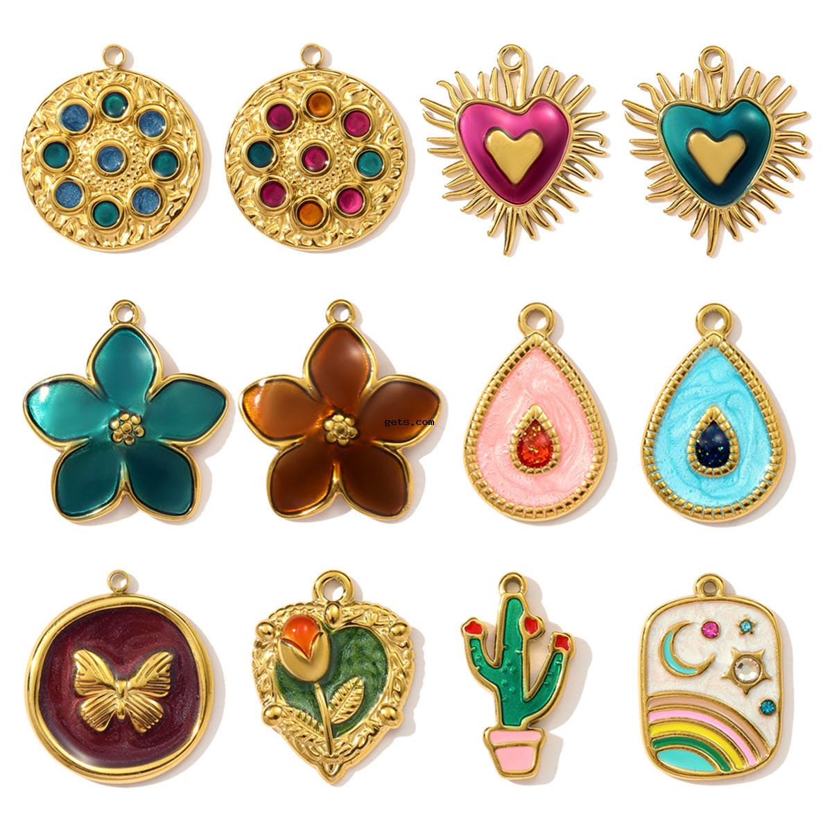 Ювелирные подвески из нержавеющей стали, Нержавеющая сталь 304, плакирован золотом, DIY & эмаль & со стразами, Много цветов для выбора, 3ПК/сумка, продается сумка