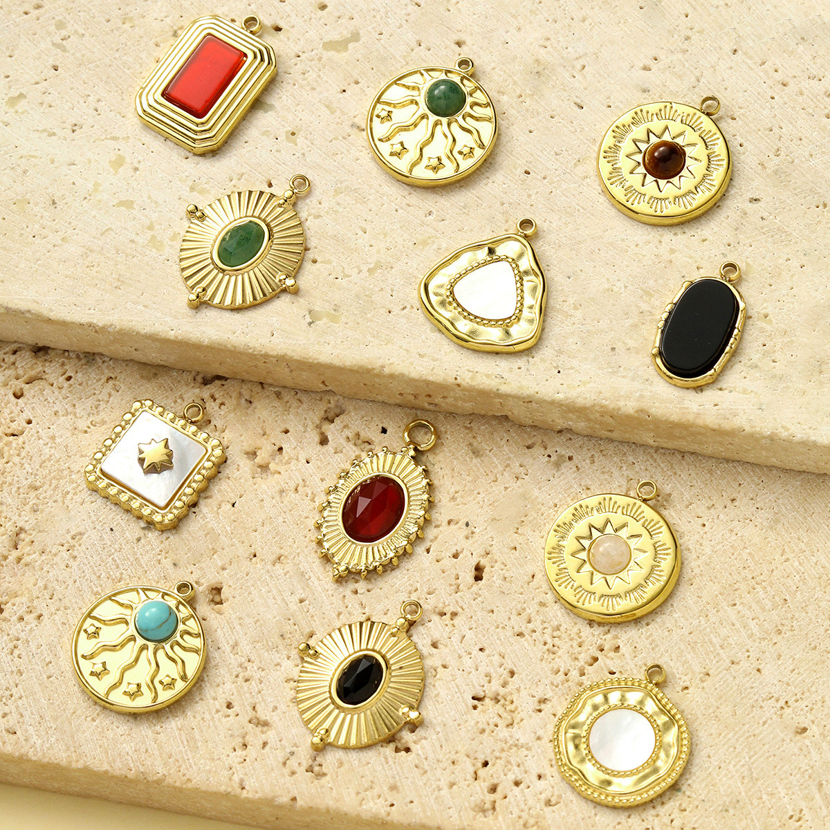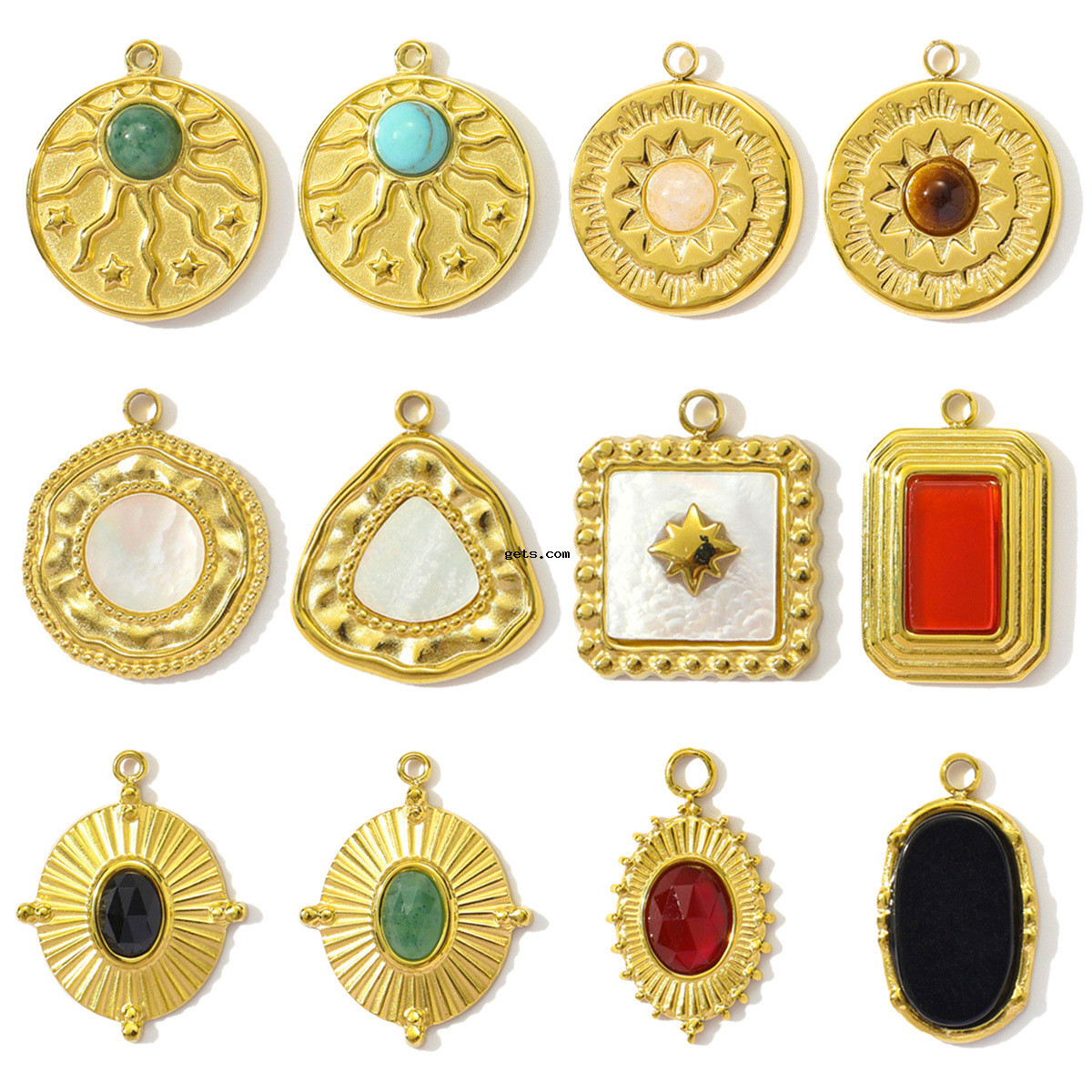 Ювелирные подвески из нержавеющей стали, Нержавеющая сталь 304, с Природный камень & Белая ракушка, плакирован золотом, DIY, Много цветов для выбора, 3ПК/сумка, продается сумка