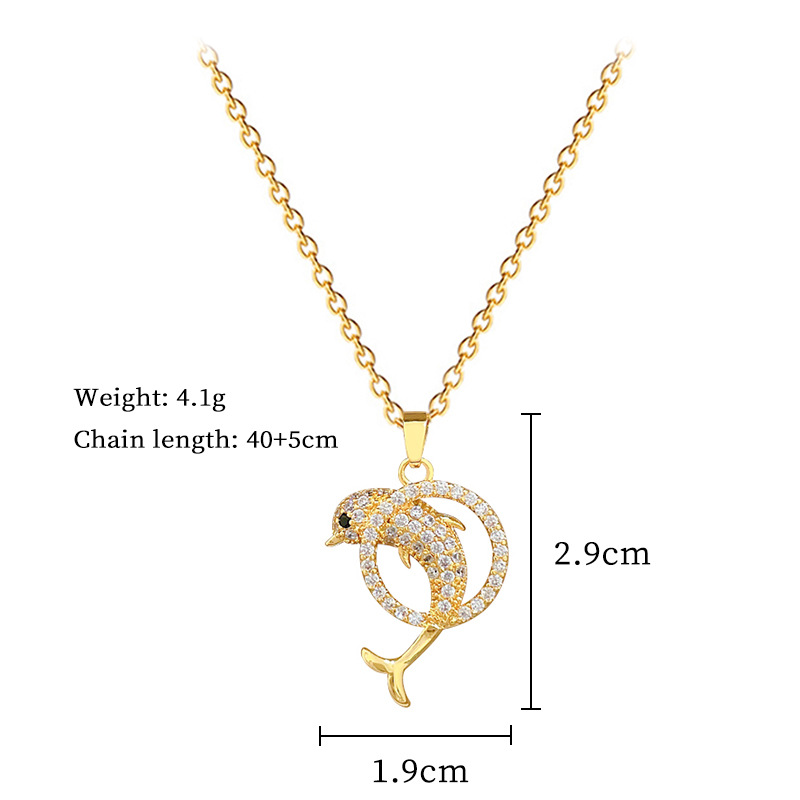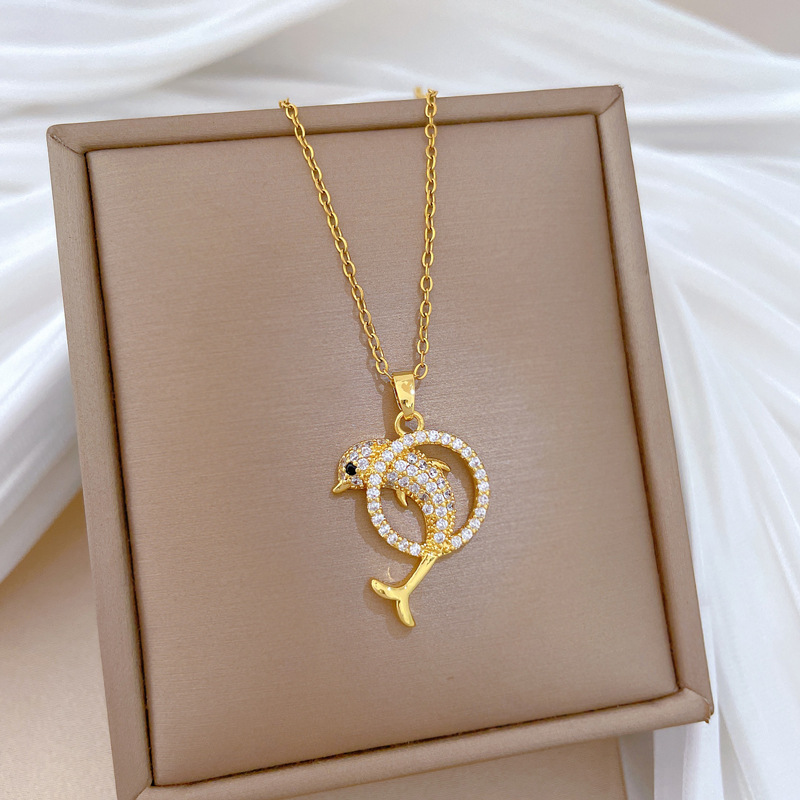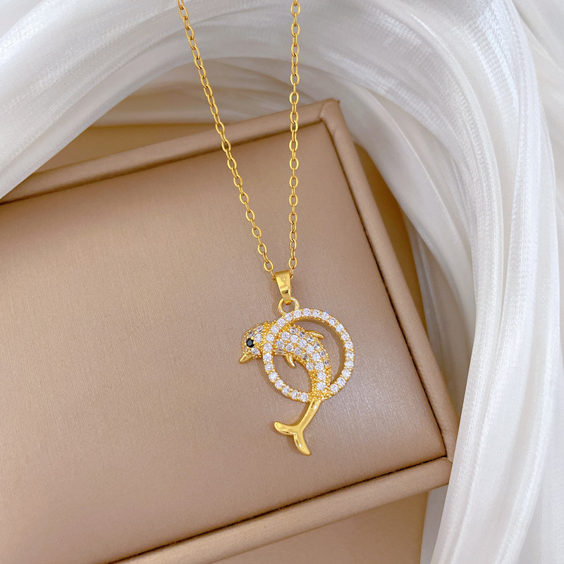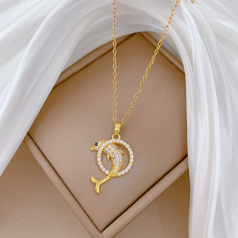 Титановые стали ожерелье, титан, с Латунь, Дельфин, инкрустированное микро кубического циркония & Женский & отверстие, Золотой, продается PC
