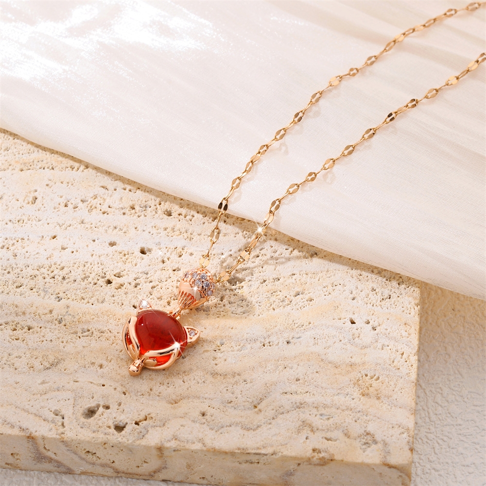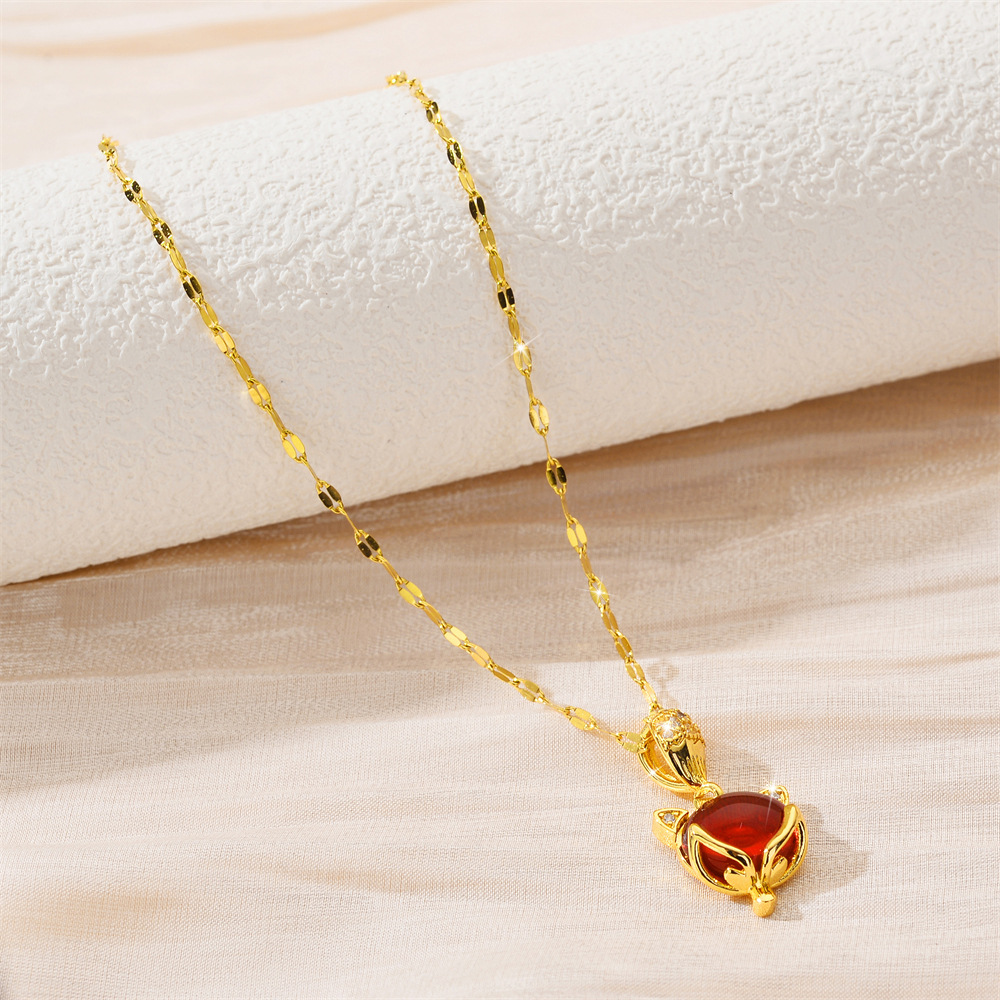 Титановые стали ожерелье, титан, с кошачий глаз, Лисица, Другое покрытие, ювелирные изделия моды & Женский & со стразами, Много цветов для выбора, продается PC