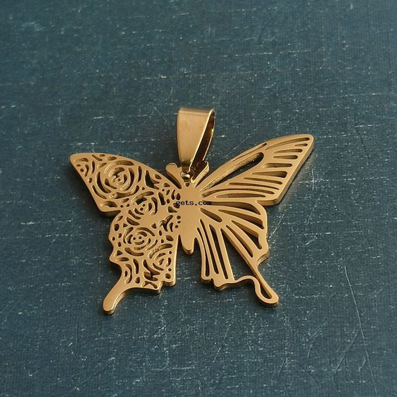 титан подвески, бабочка, плакирован золотом, DIY, Золотой, продается PC