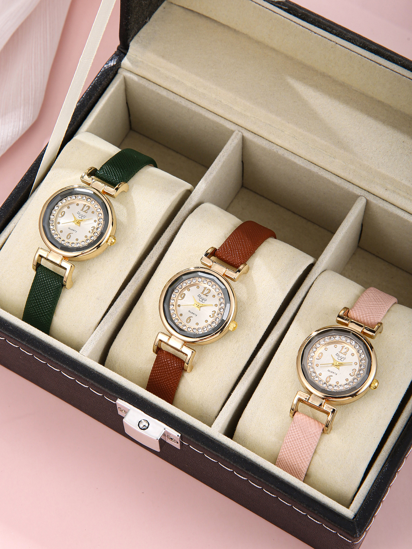 Женские наручные часы, сплав, с искусственная кожа & Стеклянный & Нержавеющая сталь 304, Другое покрытие, ювелирные изделия моды & Женский & со стразами, Много цветов для выбора, длина:21.5 см, продается PC
