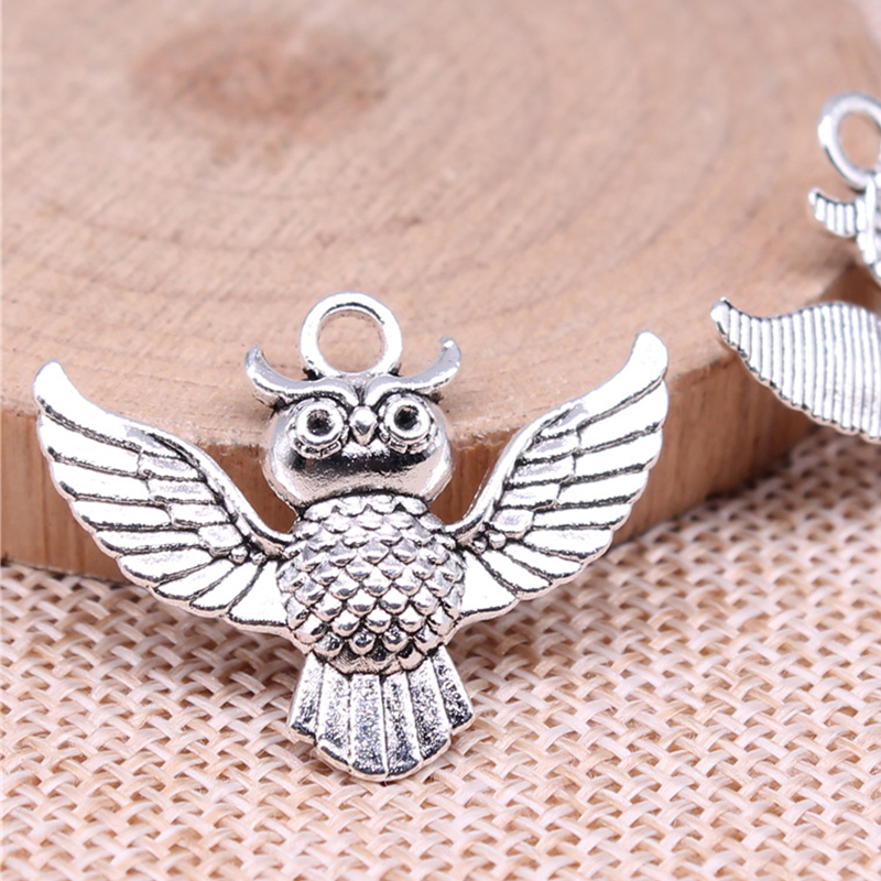 Подвески из цинкового сплава в форме животных, цинковый сплав, Сова, плакированный цветом под старое серебро, DIY, 30x24mm, 10ПК/сумка, продается сумка