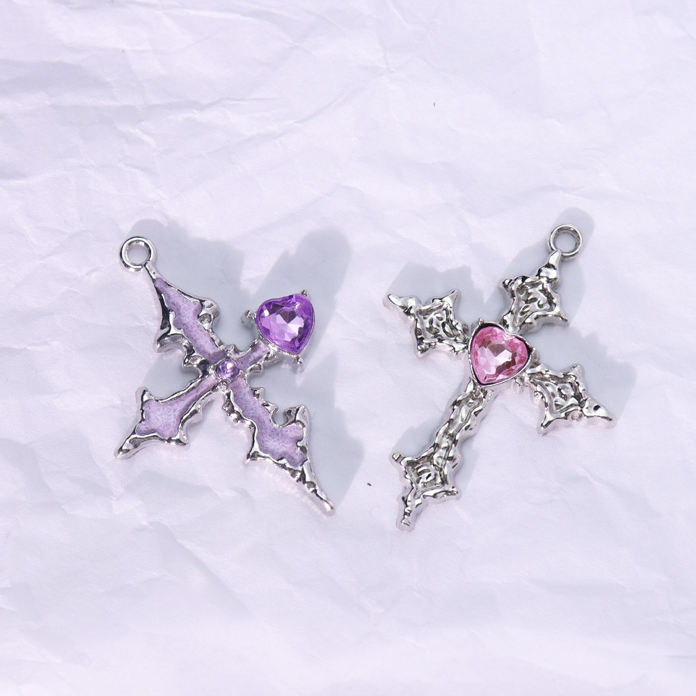 Цинкового сплава крест подвески, цинковый сплав, Kресты, плакирован золотом, DIY & эмаль & со стразами, Много цветов для выбора, продается PC