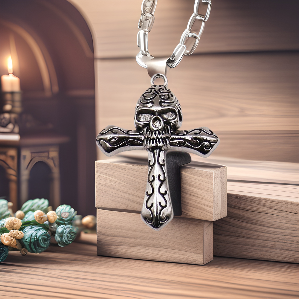 Цинкового сплава крест подвески, цинковый сплав, Kресты, плакирован золотом, Хэллоуин дизайн & DIY, серебряный, продается PC
