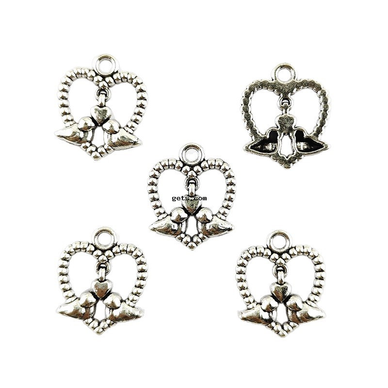 Подвеска- сердце из цинкового сплава, цинковый сплав, Сердце, плакирован серебром, DIY & отверстие, 18x15mm, 100ПК/сумка, продается сумка