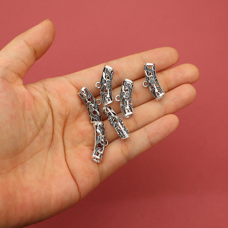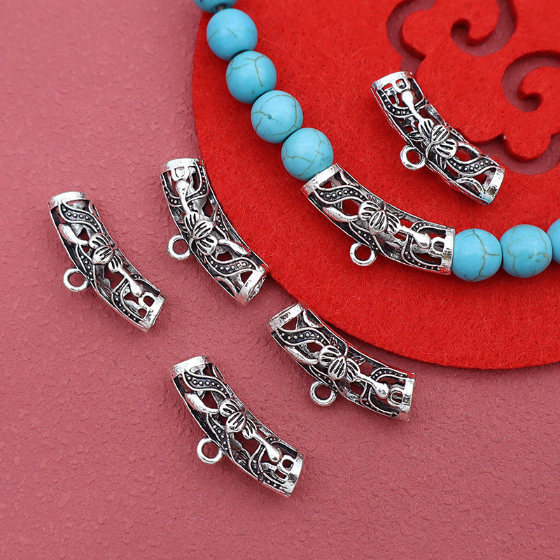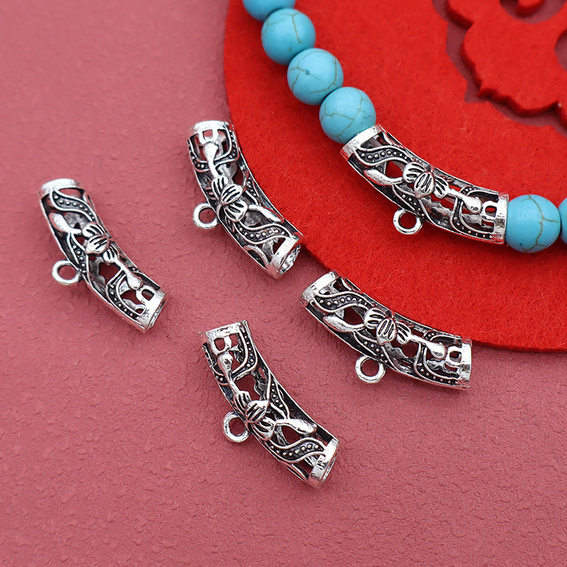 цинковый сплав изогнутые бусины-трубки, плакирован серебром, DIY, 25.50x11mm, 200ПК/сумка, продается сумка